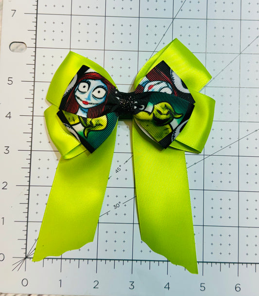 Cute green Nightmare Bow; Jack hair bow; Cute green Sally hair bow, green monster girls bow; toddlers scary nightmare bow; Halloween bow