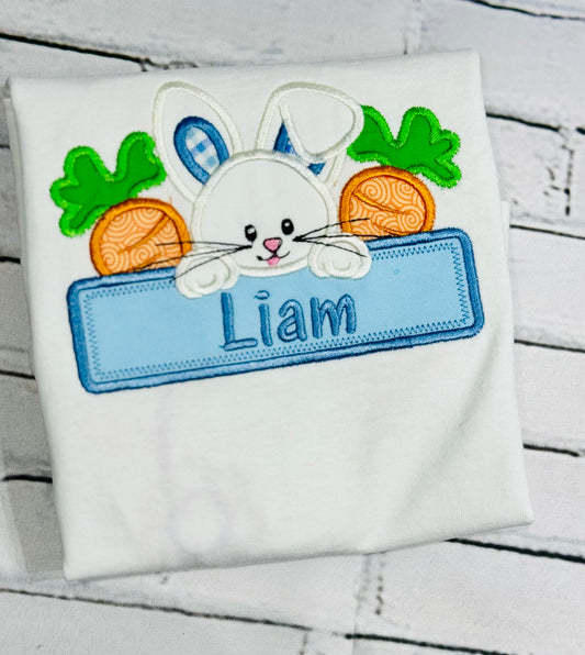 Boys Easter shirt with name embroidery,Personalized Easter bunny shirt for toddlers,Custom embroidered kids Easter outfit, Handmade shirt