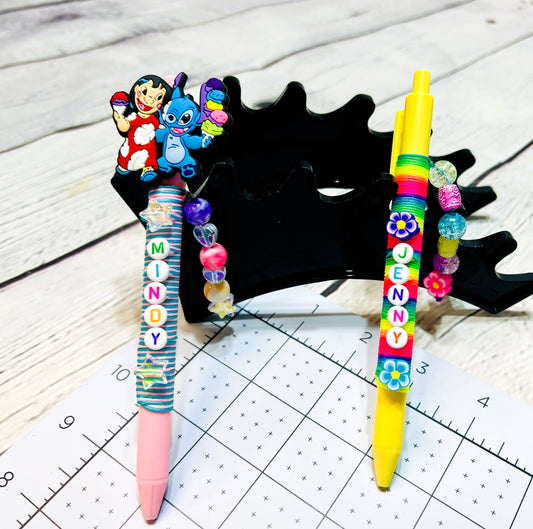 Beaded pen with stitch costume kitty, Cute kitty in Stitch-Outfit beaded pen,custom stitch-inspired kitty bead pen, Blue alien costume bead