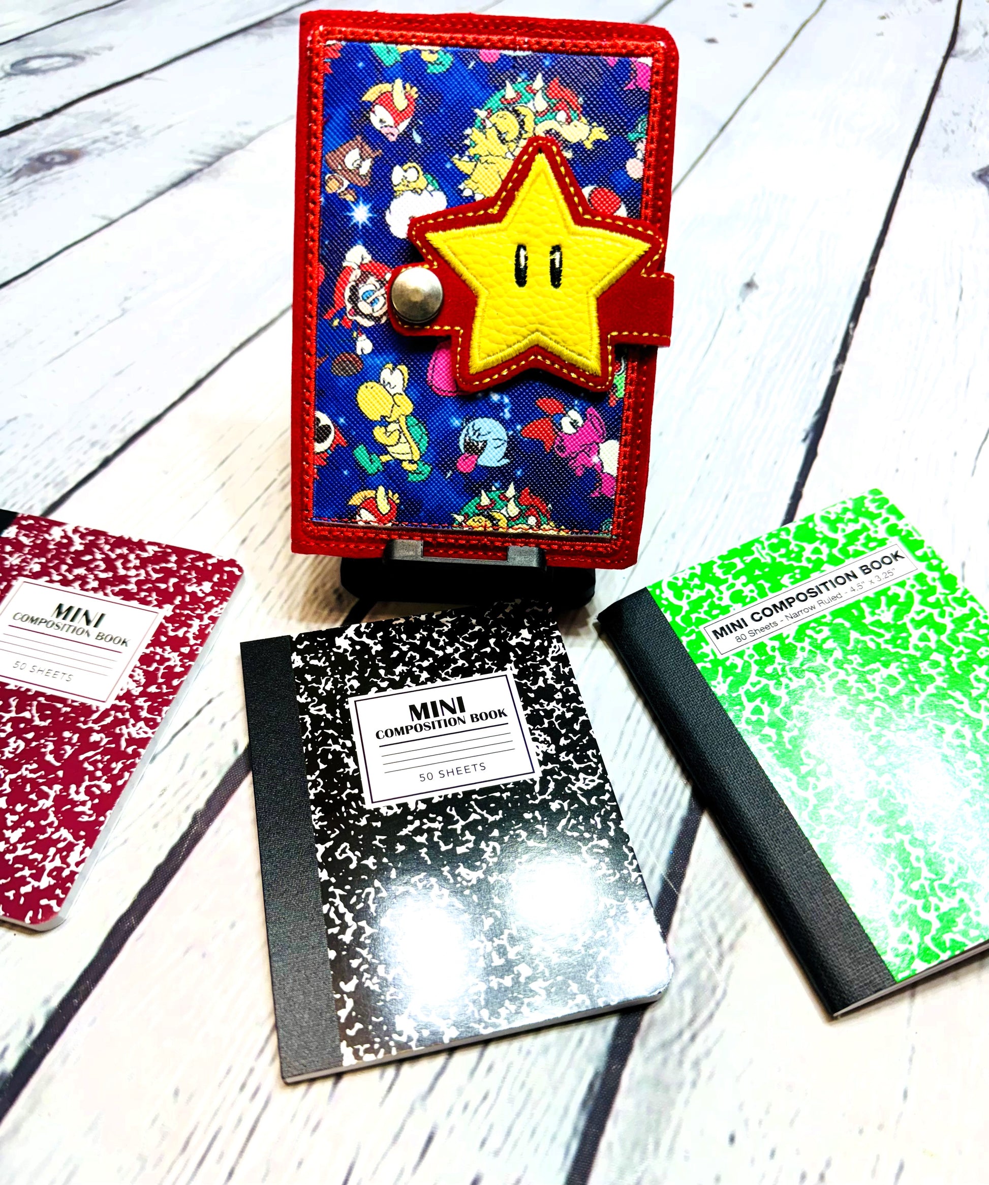 Mini Composition notebook with cover\super game power star mini composition book\personalized mini book cover\super kids game mini notebook
