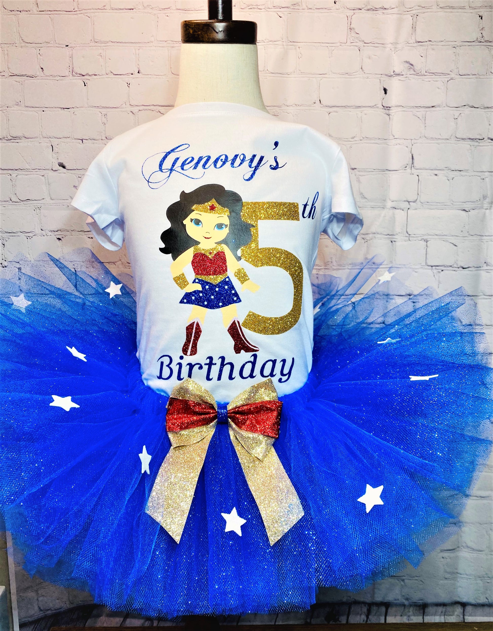 Wonder Birthday Tutu outfit/Girls Super Hero birthday outfit/Wonder woman party tutu set/Super Hero costume/wonder woman personalized Shirt